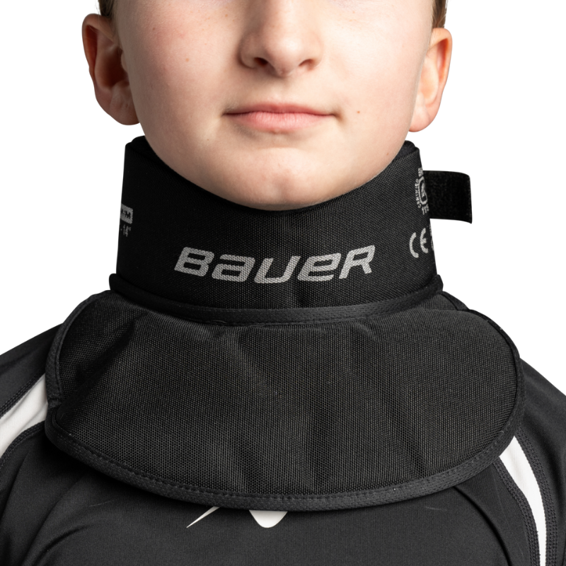 Engineered for youth player safety, the Bauer NLP8 Core Cut-Resistant Neck Guard - Youth provides certified protection for the neck and clavicle area. Featuring an extended cut-resistant bib that fits discreetly under jerseys and an easy-close adjustable collar with hook-and-loop closure, it combines essential safety with a comfortable, customizable fit for young athletes.