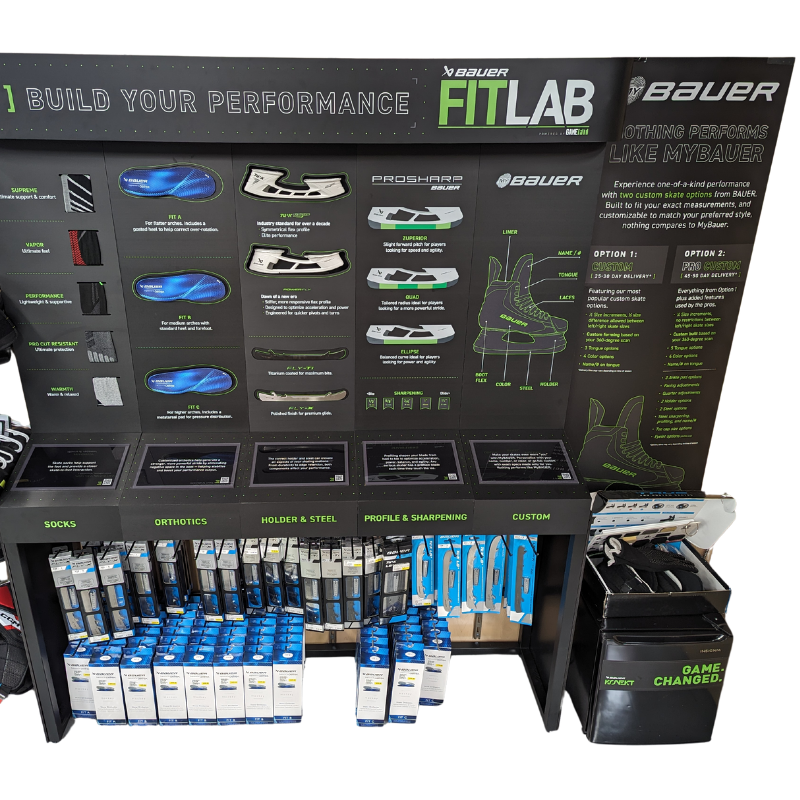 Experience the pinnacle of skate fitting with BAUER FitLab, the most advanced service in hockey. Leveraging cutting-edge scanning technology, BAUER FitLab analyzes the unique characteristics of your feet to provide personalized recommendations, enhancing your stride with precision-crafted components. This premium, hands-on experience allows you to custom-build your ideal skate from the ground up, elevating your skating to new heights.