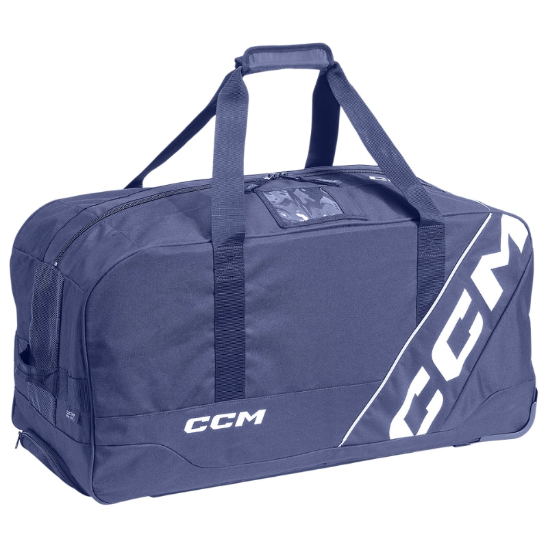 The CCM 520 Player 32" Wheeled Hockey Bag (2025) combines rugged durability with effortless transport, featuring heavy-duty all-terrain wheels and a telescopic handle for smooth mobility. Built from high-density PVC-coated polyester, this bag offers dedicated skate pockets and ventilated mesh panels to keep gear organized and fresh, making it the perfect travel companion for athletes with its substantial 115L capacity.