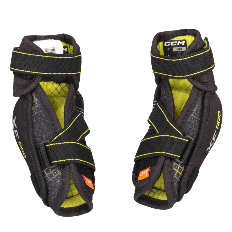 The CCM Tacks XF Pro Elbow Pads provide maximum coverage and comfort with their anatomical shield design and 2-piece construction. Featuring an adjustable ADPTFIT guard with D30 zero for durable protection and comfortable EVA foam liners for breathability. The anatomical JDP cap and D30 Zero comfort donut offer superior elbow support.