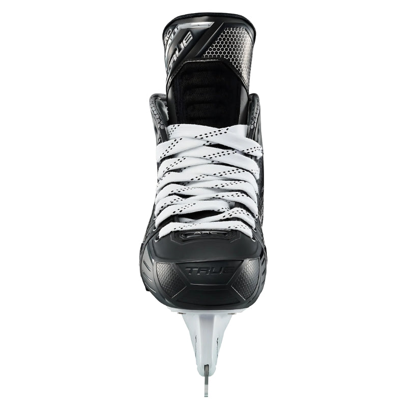 The True CATALYST ARC Hockey Skates are crafted for precision and performance. They feature the Shift Max Holder and 9CR Steel blades for exceptional agility. Durable stainless steel rivets and an injection-molded nylon composite shell ensure lasting stability. For comfort and protection, the skates include a poured PU rubber side panel, a pro-grade injection-molded tendon guard, a Clarino liner, and a lightweight pro tongue with a molded T-guard. These skates are designed to elevate your game to new heights.
